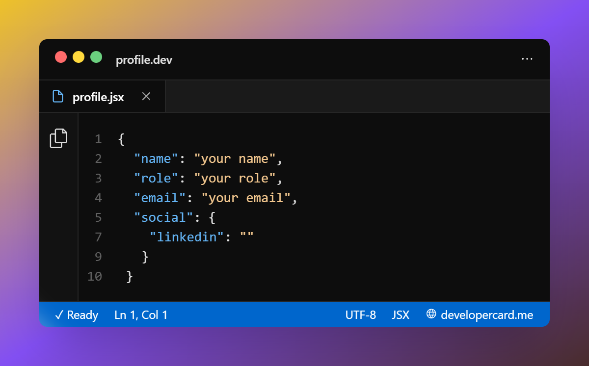 Create stunning developer profile cards in seconds with developercard.me. Customize gradients, avatar, skills, social links, and export high-resolution images or embeddable code for your portfolio and GitHub profile.